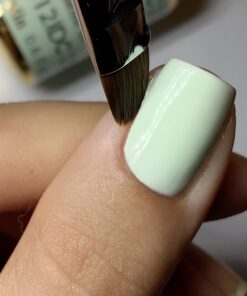 Clean up excess polish with DND French Brush #14. This flat brush is perfect for one stroke design/ French tips as well as cleaning around the nail walls.